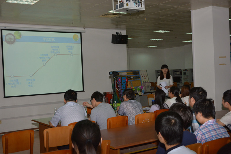机电汽车学院一直贯彻落实“国务院关于加快发展现代职业教育的决定”, 学院领导和各个专业致力于提高学院人才培养质量,不断创新改革教学模式。此次机电系将《组态技术》专业课程的评价体系率先改革,探索出与传统考核方式不同的以“作品+答辩”的新的评价体系。这种评价体系由“学生、老师、企业专家”三方组成,具体方式是老师不固定主题,只给出作品需要包含的知识点,学生在规定设计周数内设计、调试成功后,以班级为单位统一上交作品电子版光盘,并在安排的时间内答辩,答辩评委由“校内老师+校外专家”组成,最终期末考试评分成绩由“作品+答辩+平时成绩”共同构成。这种工程项目式考试方式可以加大对学生的实践能力、综合素质的考查力度,并能培养学生创新意识,提高学生综合应用所学知识分析和解决实际问题的能力,是对传统的笔试考试形式的重大改革。