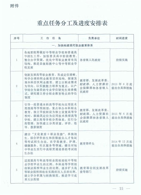 (三)目标任务。到2020年,形成适应发展需求、产教深度融合、中职高职衔接、职业教育与普通教育相互沟通,体现终身教育理念,具有中国特色、世界水平的现代职业教育体系。